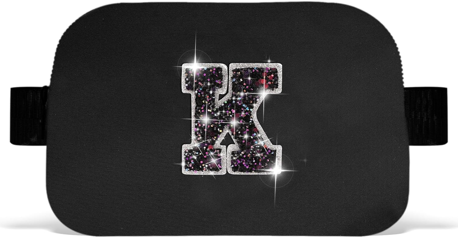 Girl Stuff - Teen Girl Gifts Trendy Stuff,Cross Body Bag for Girls Belt Bag for Women - Fanny Pack for Kids Teen,Crossbody Bag for Women Trendy Belt Bag Waist Packs | Black,Initial K