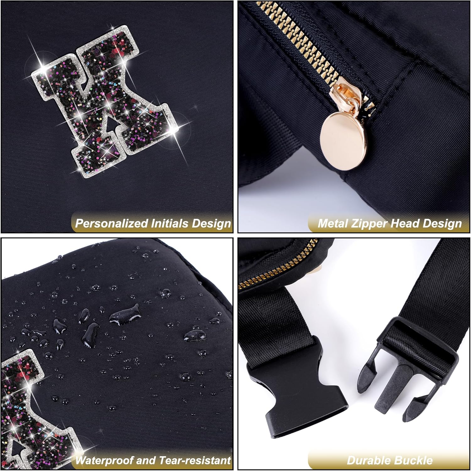 - HIGH QUALITY MATERIAL: Made of waterproof nylon material,but please do not immerse it in water.This fanny bag is designed with a round metal zipper head and personalized initials for a stylish and elegant look