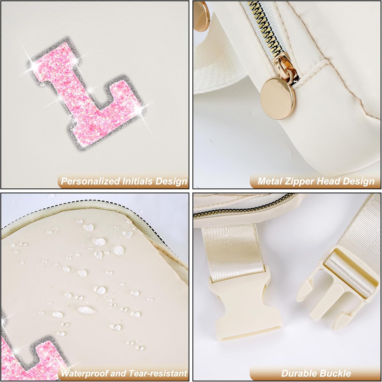 - HIGH QUALITY MATERIAL: Made of waterproof nylon material,but please do not immerse it in water.This fanny bag is designed with a round metal zipper head and personalized initials for a stylish and elegant look