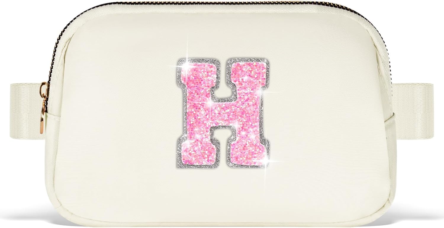Monogrammed Gifts for Girls Women - Fanny Pack for Kids Teens,Crossbody Bag for Women Trendy Everywhere Belt Bag Monogrammed Crossbody Bag Waist Pack | Cream,Initial H