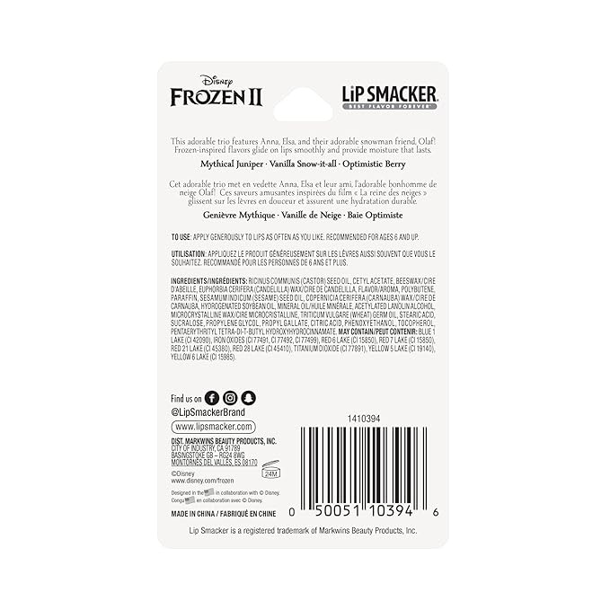 Lip Smackers Disney Frozen 2 Flavored Lip Balm Trio, Mythical Juniper, Vanilla Snow-it-all, Optimistic Berry, Set of 3, Clear, For Kids, Men, Women (Pack of 2)
