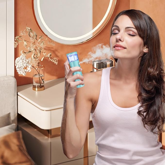 - 【Compact Size & Easy to Carry】Portable facial steamers is small enough for the palm of your hand to carry around. You can put the nano mister easily away in your bag, like your lash kit, purse, or pocket. It's better than getting a big nano facial steamers because this nano facial steamers doesn't take up any space. The nano facial mister is a great size for on-the-go skincare like hiking or traveling