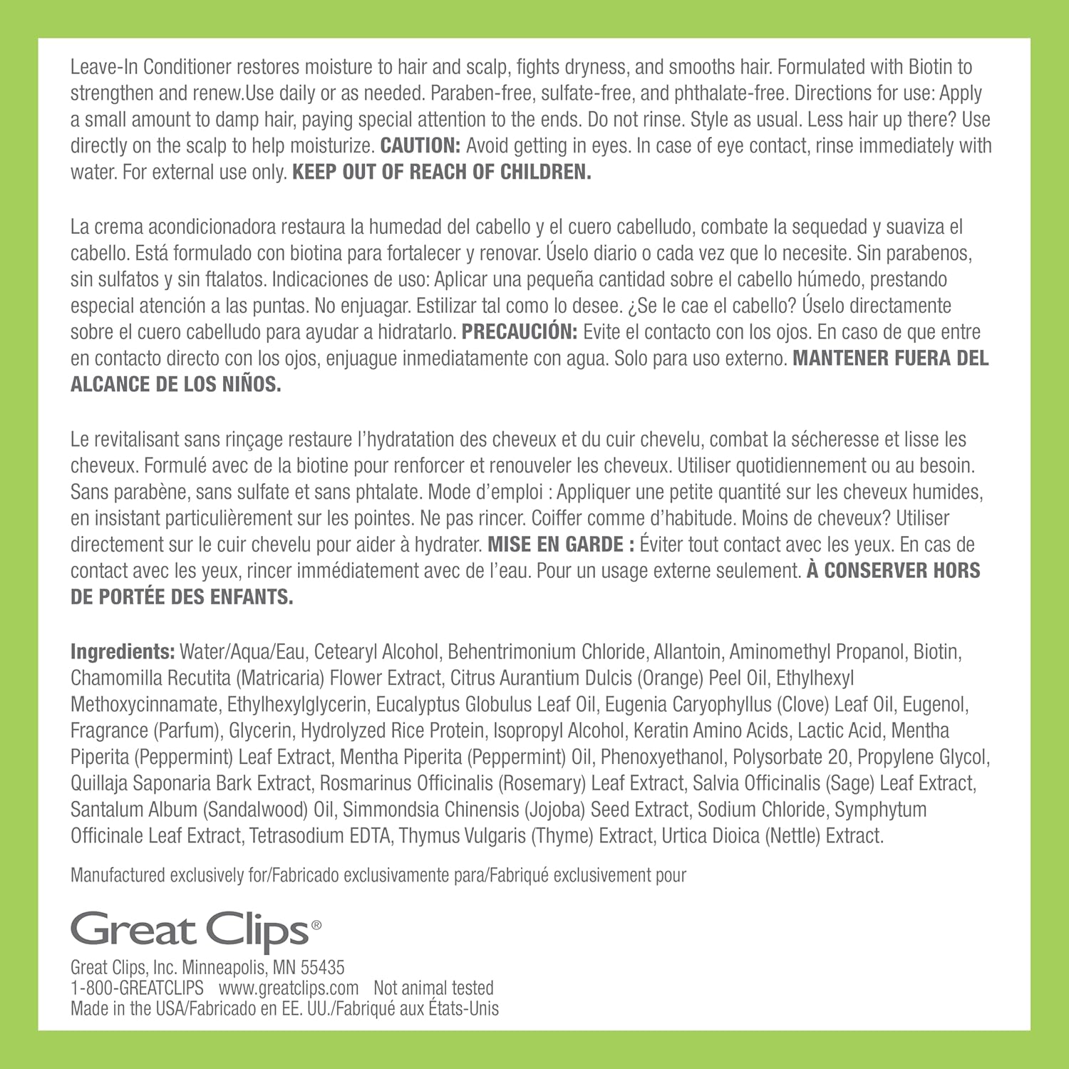 - HYDRATE + MOISTURIZE: Take care of your hair with this leave-in conditioner that includes biotin and jojoba. Each of these natural ingredients provide hydration to the scalp and help restore moisture to the hair.