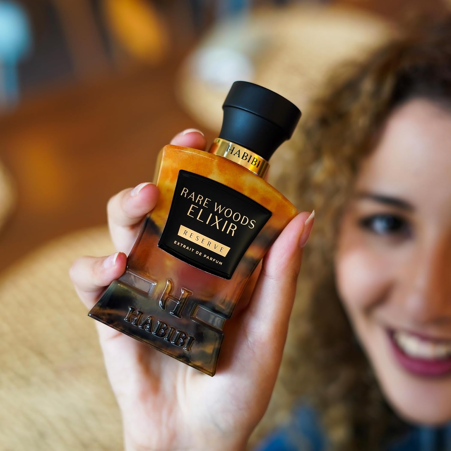 H HABIBI Rare Wood Elixir Extrait De Parfum – Cologne for Men & Perfume for Women, 2.5 oz Long Lasting Unisex Fragrance with Cardamom & Tea, Arabian Scent