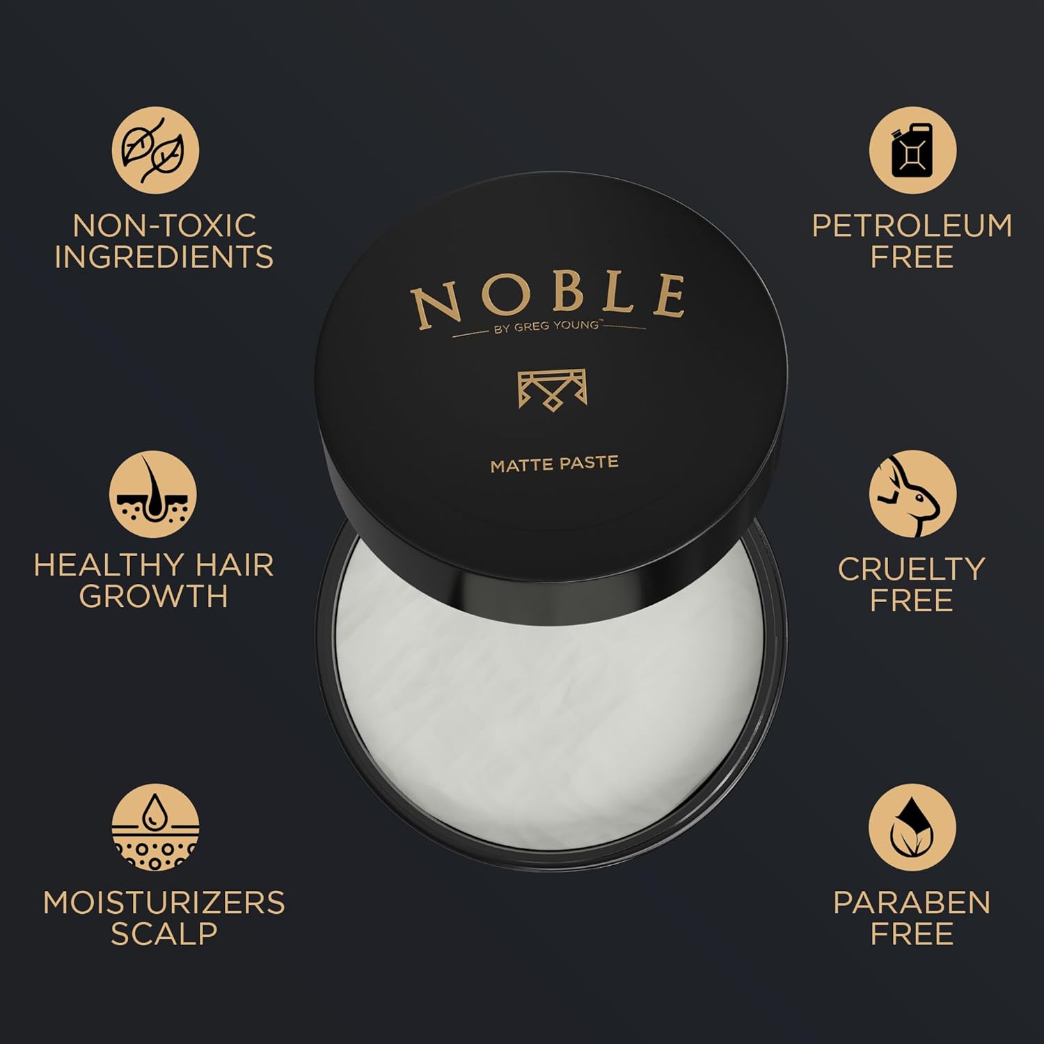 - LONG-LASTING FORMULA : Noble By Greg Young mens hair product styling paste resists all the elements like wind and humidity. Our product is easy to reactive and re-style all day. Noble is the perfect styling matte paste to give you a look to be proud of