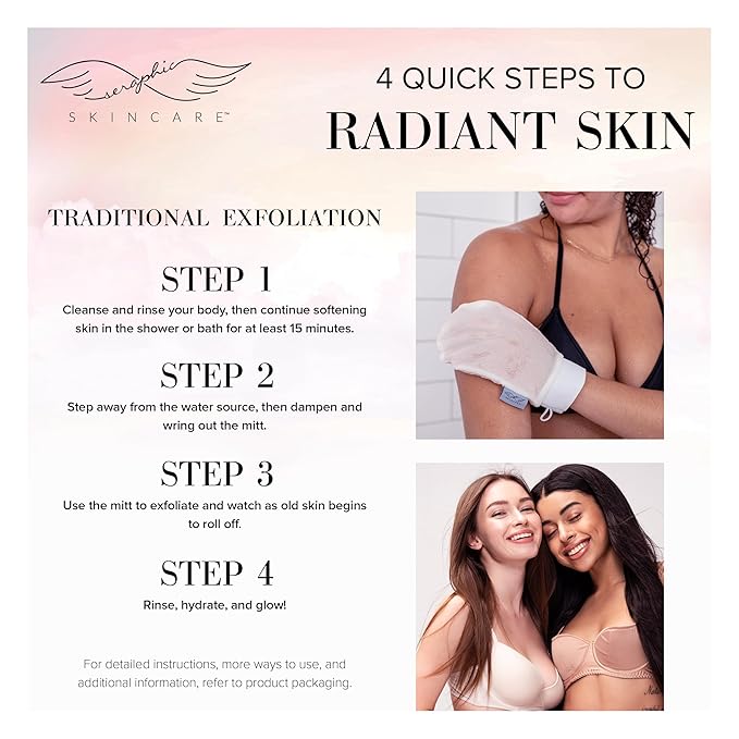 - Indulge in an At-Home Spa Experience – At Seraphic Skincare, we’re committed to offering premium exfoliating products at affordable prices. We invite you to immerse yourself in the luxurious experience of exfoliation and self-care at home by adding our Korean-style exfoliating mitts to your beauty routine. Get that glow you’ve been dreaming about!