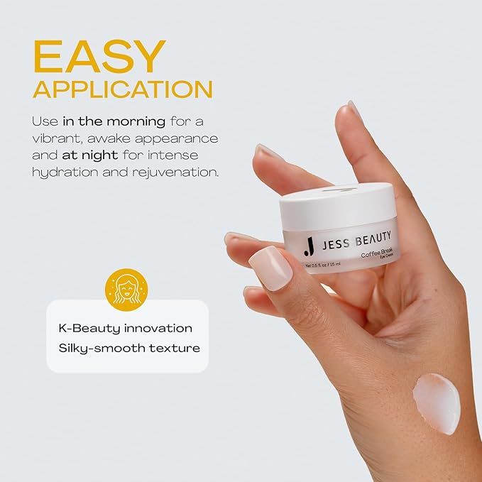 JESS BEAUTY | Coffee Break Eye Cream with 1% Caffeine, Squalane and Panthenol I Beauty and Self Care - Korean Beauty Eye Contour 0.5 fl. oz