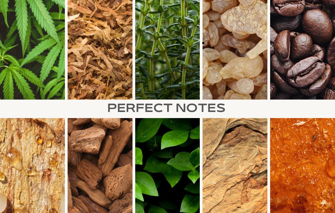 - TOP NOTES: Cannabis, Green Notes MIDDLE NOTES: Resins, Woodsy Notes, Tobacco, Coffee BASE NOTES: Agarwood, Incense