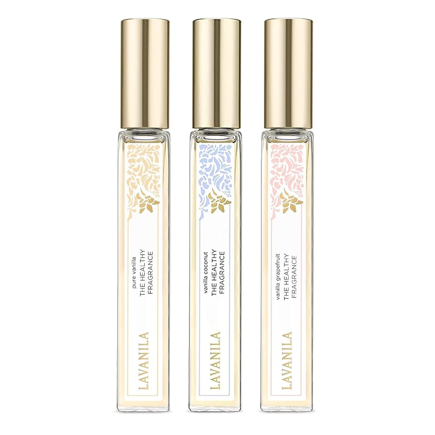 Lavanila Roller Perfume Set of 3 (10ml Each), Includes Pure Vanilla + Vanilla Coconut + Grapefruit - The Healthy Fragrance for Women, Clean and Natural