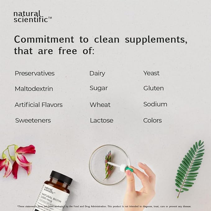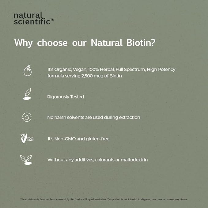 - Pure Biotin Supplement: Our Biotin (Vitamin B7) is sourced from organic Agati Leaf, providing a naturally occurring and highly absorbable form of this essential vitamin. We use no artificial, harmful or unnecessary ingredients.