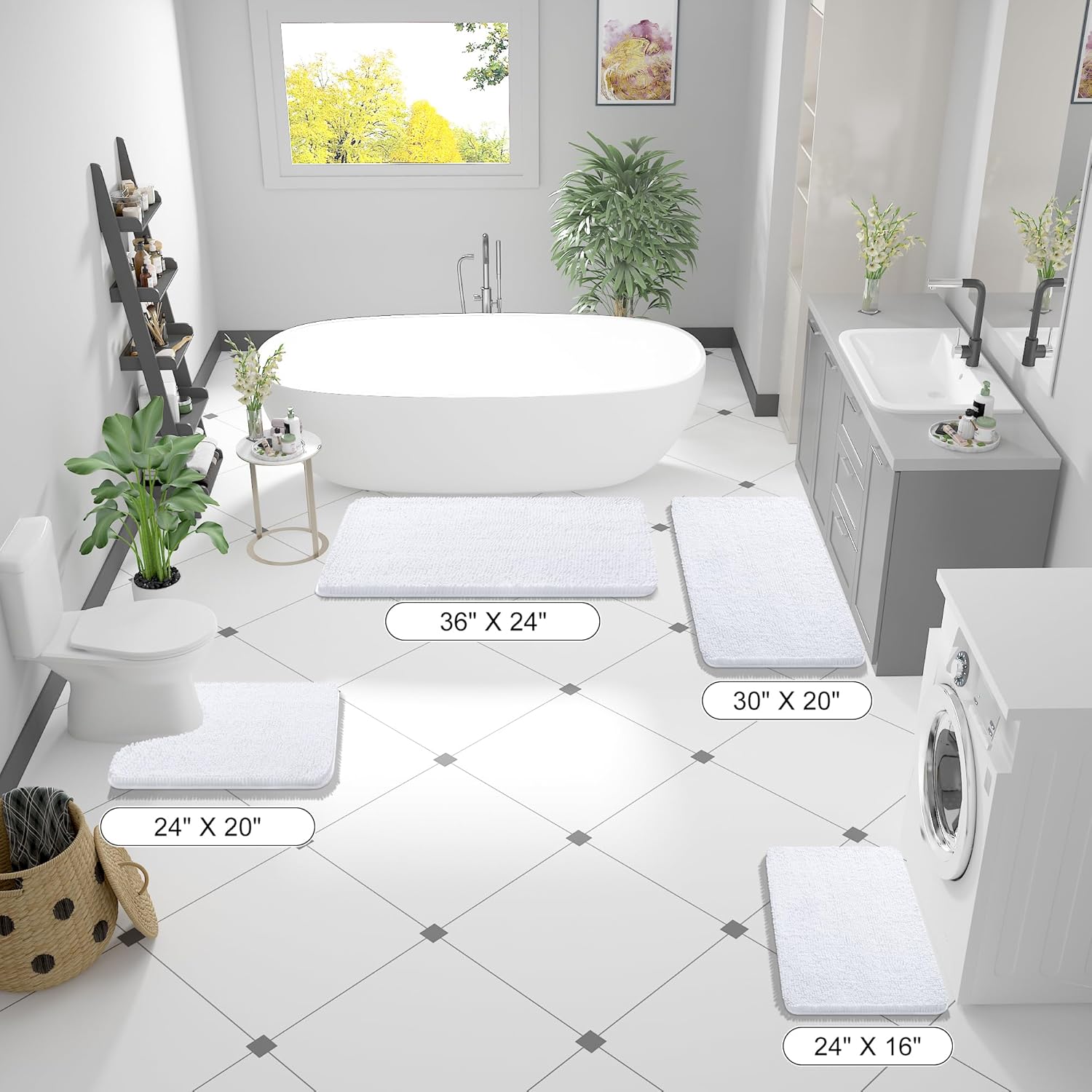 OLANLY Bathroom Rugs 47x24, Extra Soft Absorbent Chenille Bath Rugs, Rubber Backing Quick Dry, Machine Washable Bath Mats for Bathroom Floor, Tub and Shower, Home Decor Accessories, White