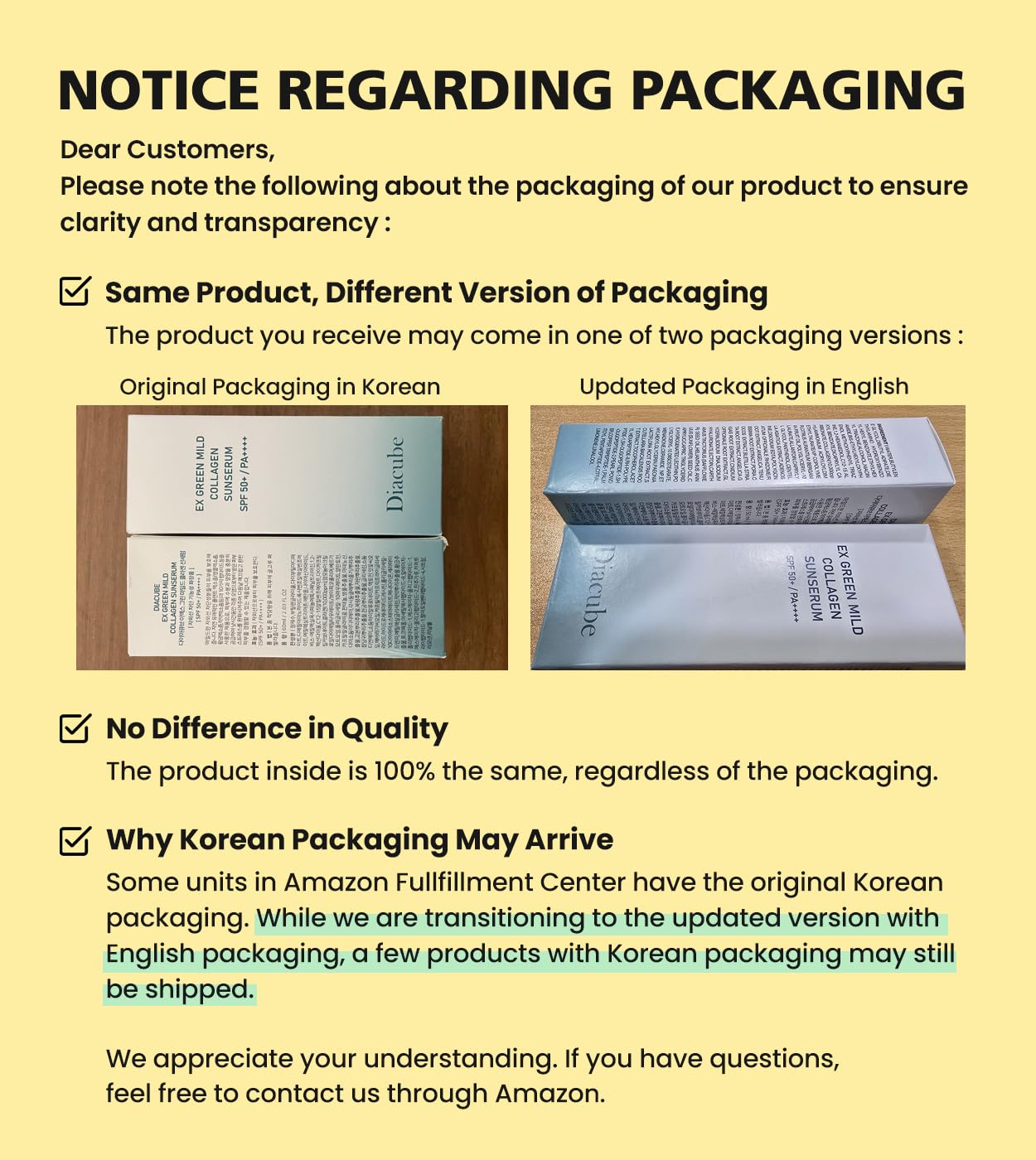 - 【STRONG UV PROTECTION】Our DIACUBE EX Green Mild Sunscreen Serum provides effective UVA & UVB protection of SPF 54.6 (±4.0) and PA++++ plus hydration for a healthier looking skin. It imparts a dewy and glowy finish, leaving the skin feeling smooth and moisturized without any heaviness. *HOW TO USE - After the last step of skin care routine and before makeup, apply a sufficient amount of sunscreen on the skin, avoiding the eye area. It is highly recommended to apply it at least 30 minutes before beginning outdoor activities to maximize benefits.