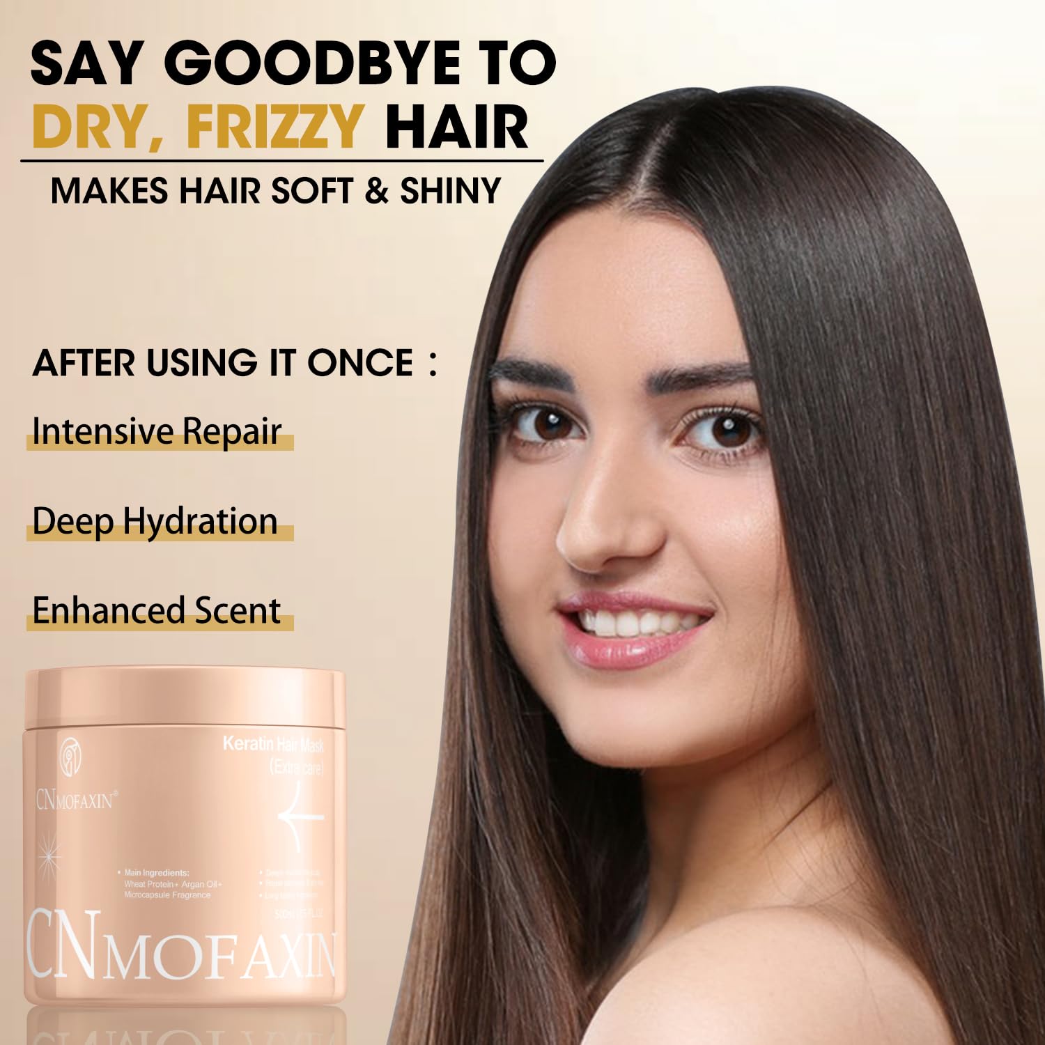 - 【Intensive Repair for Extremely Damaged Hair】: CNMOFAXIN Keratin Hair Masque is infused with sodium cocoyl hydrolyzed wheat protein and Moroccan oil to effectively replenish protein and moisture into severely damaged hair, restoring it to a healthy state.