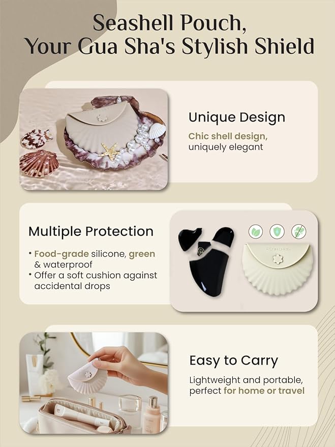 - Cute Seashell Bag:The Guasha Tool comes in a high quality silicone case inspired by seashells, which is elegantly shaped and makes the guasha tool portable and more drop-proof