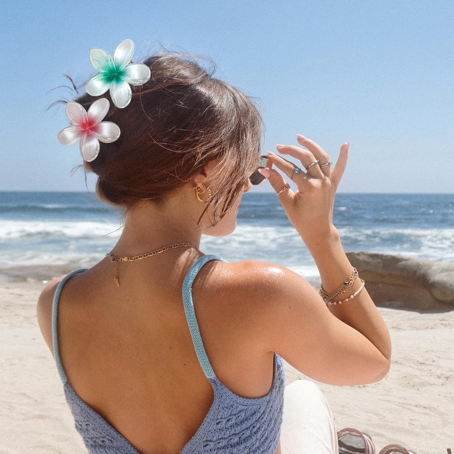 Cician Hawaiian Flower Hair Claw Clips-4PCS Cute Hair Clips for Women/Girls,Big Claw Clips for Thick/Thin Hair,Clear Clips for Hair Birthday Gifts (pearl)