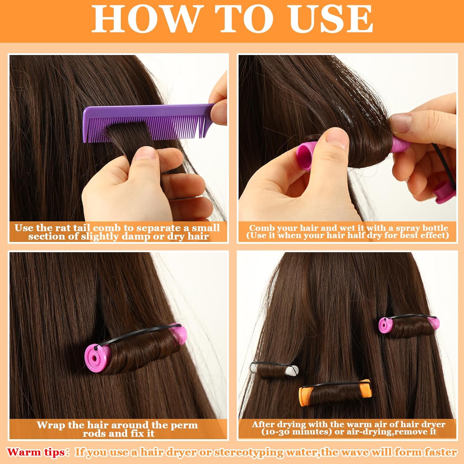 - 【Easy to Use】You can use a rat tail comb to separate a small strand of slightly damp or dry hair, wrap it around the rod, and then secure it with a rubber band, wait for a while, and you will get charming curls. They can be used at home, in the salon, or while traveling to help create beautiful hairstyles such as waves, shaggy hair, and more.