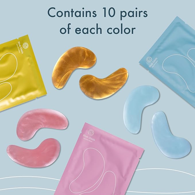 Blue Oasis Under Eye Patches for Puffy Eyes and Dark Circles - 30 Pairs Multi Pack Hydrating Hyaluronic Acid and Collagen Eye Care Gel Pads for Eye Bags, Relaxing Self Care Home Spa Gifts for Women