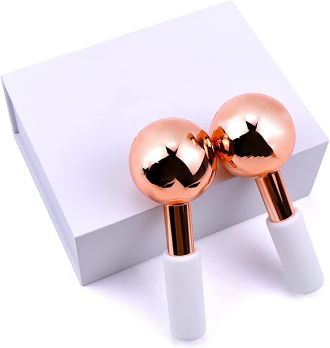 Facial Ice Globes and Roller, Cooling Massager for Face, Eyes and Neck, Cryotherapy Treatment for Puffiness, Dark Circles and Wrinkles (Rose)