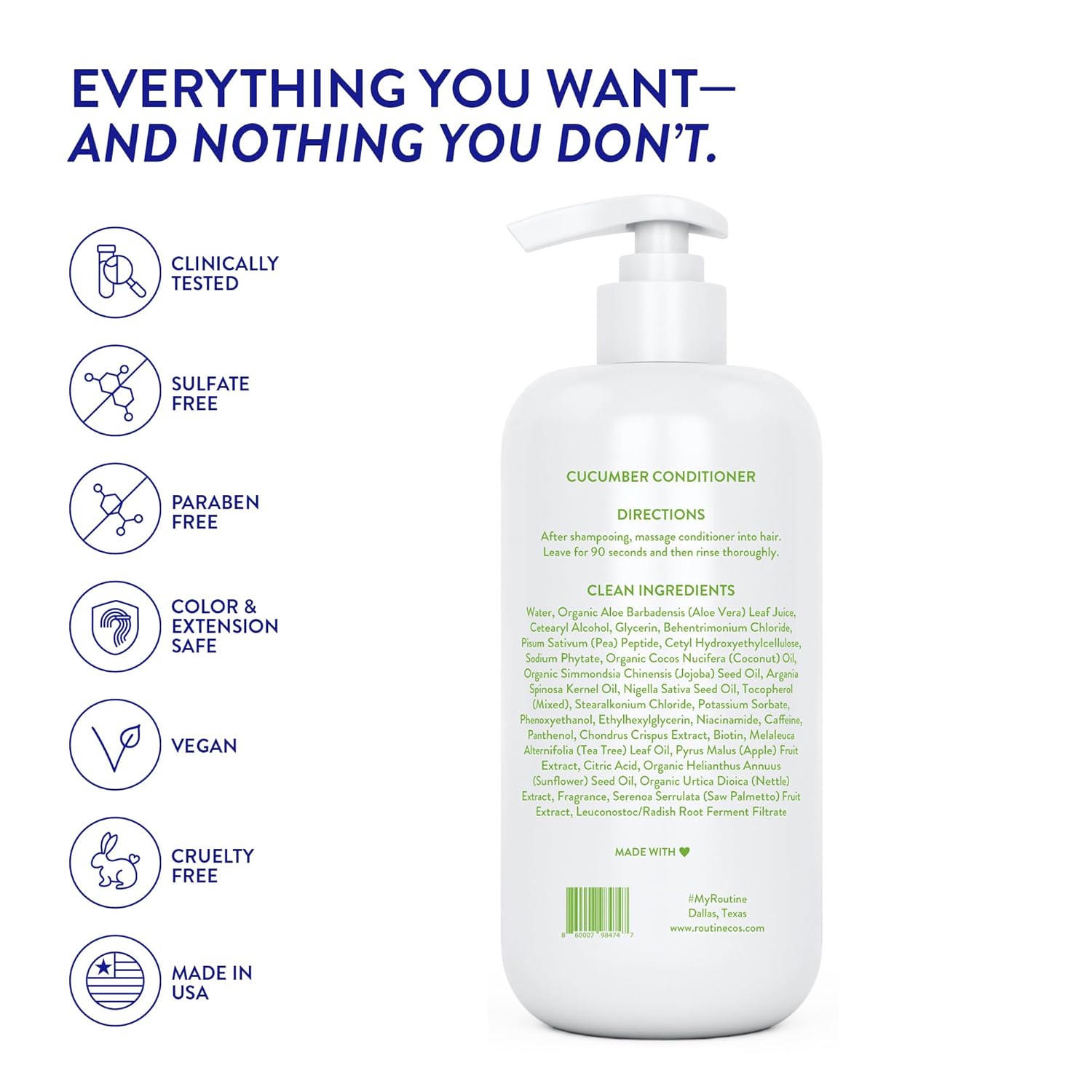 - CLEAN & EFFECTIVE INGREDIENTS: Routine Wellness Shampoo & Conditioner are gluten-free, paraben-free, soy-free, cruelty-free, and vegan. They are also silicon-free, sulfate-free, and SLS-free. Simply put, we don’t make products that we wouldn’t use on ourselves