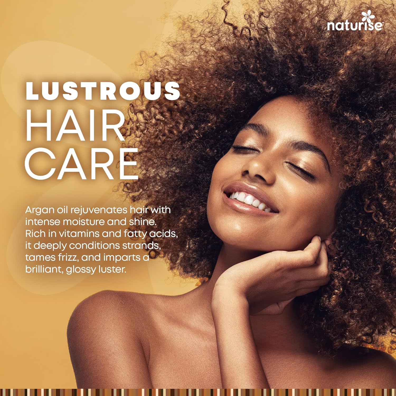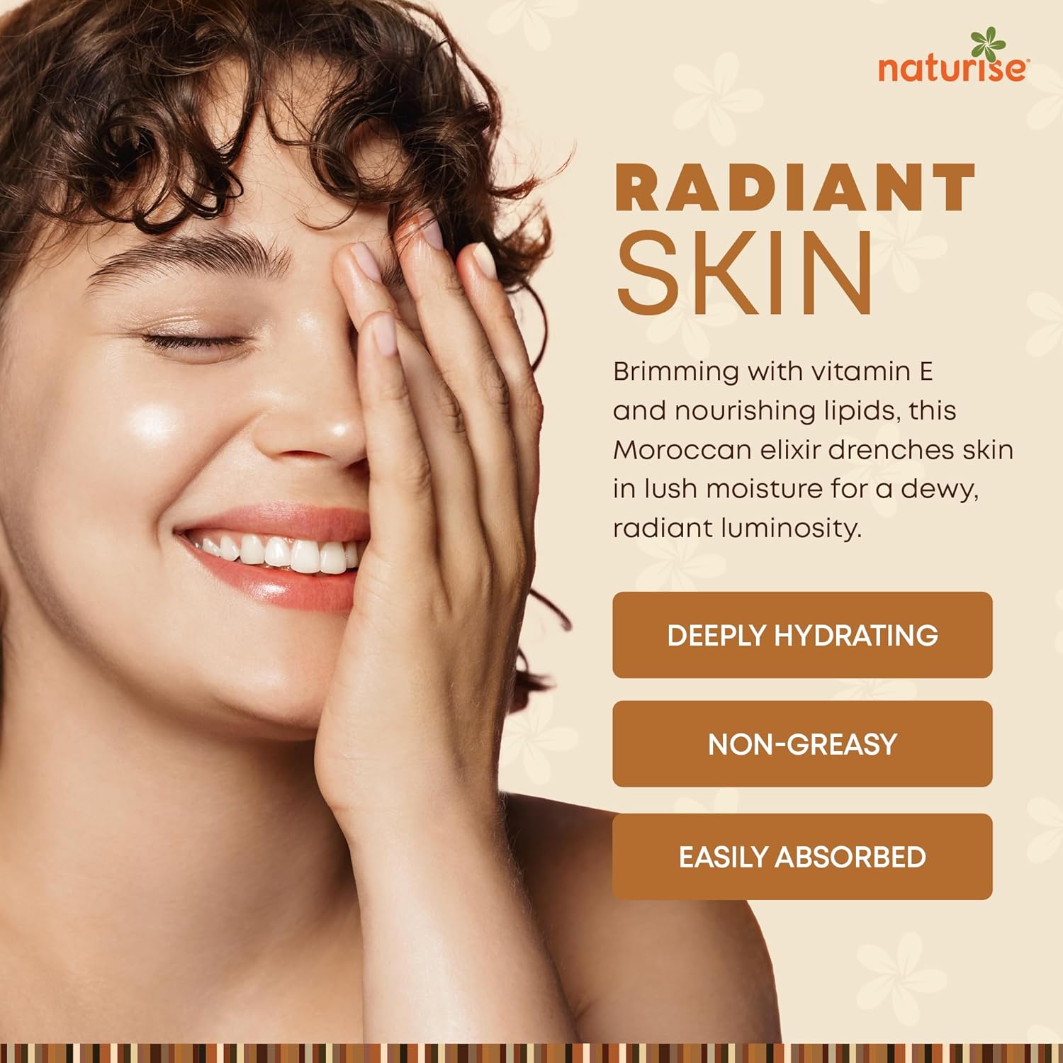 - ARGAN OIL FOR RADIANT SKIN & HAIR - Unlock the secrets of Moroccan beauty with Naturise organic pure argan oil. Perfect for moisturizing skin and revitalizing hair, it's full of rich nutrients that help soften and renew so you can achieve a dewy, youthful glow.