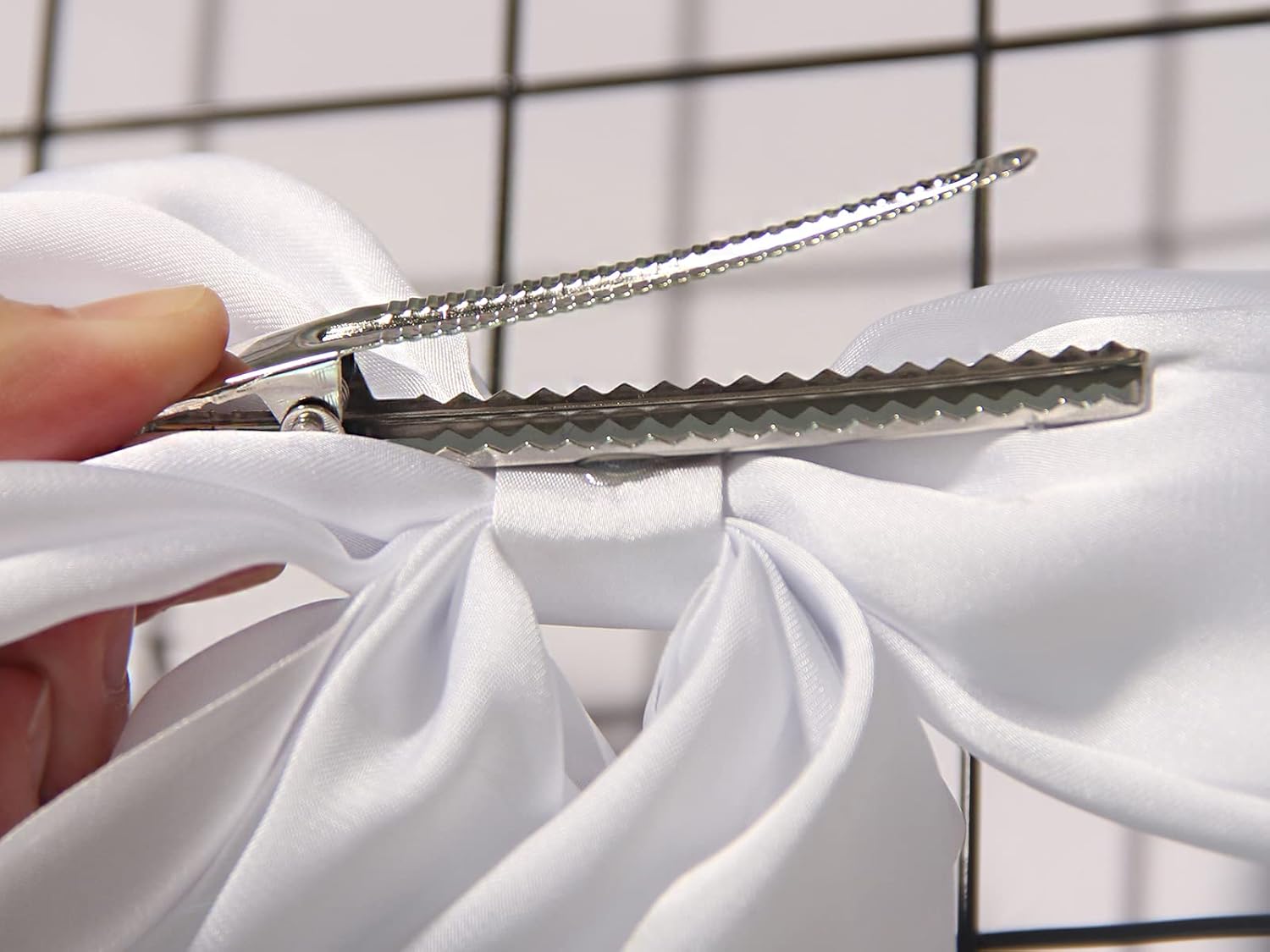 - Retro Bow Hair Clips: The hair bows are so elegant, made with very high quality satin fabric tied in a bow with a alligator clip. It is about 6.5"*10.6" for length and width. These bow clips will work for long time, and not too small or too big