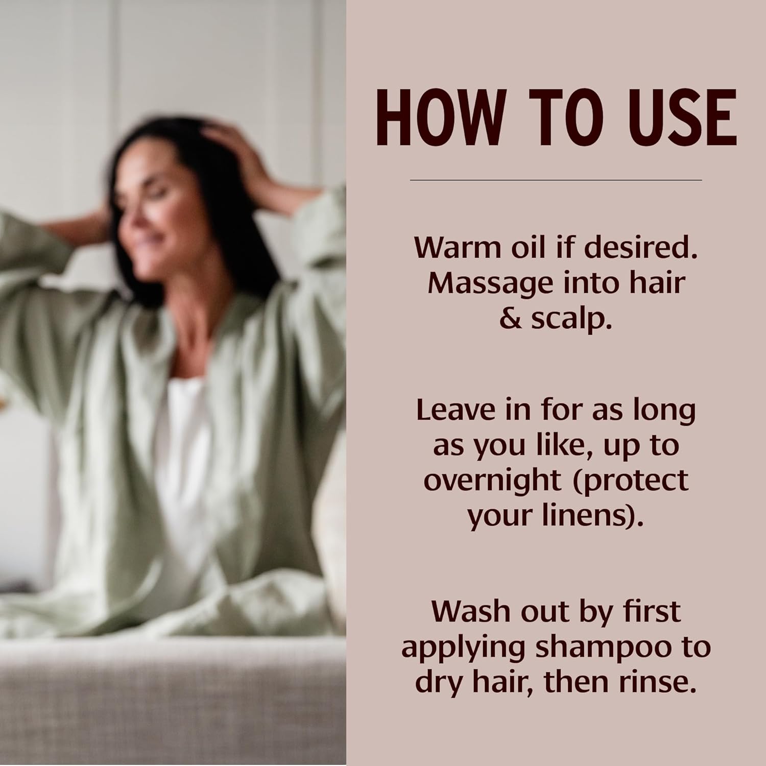 - COCONUT AND SESAME OILS help carry the cooling effects of popular Ayurvedic hair herbs directly to the scalp and hair follicles. These herbal allies include organic amla, brahmi/gotu kola, and bhringaraj, also known in Sanskrit as “the ruler of hair.”