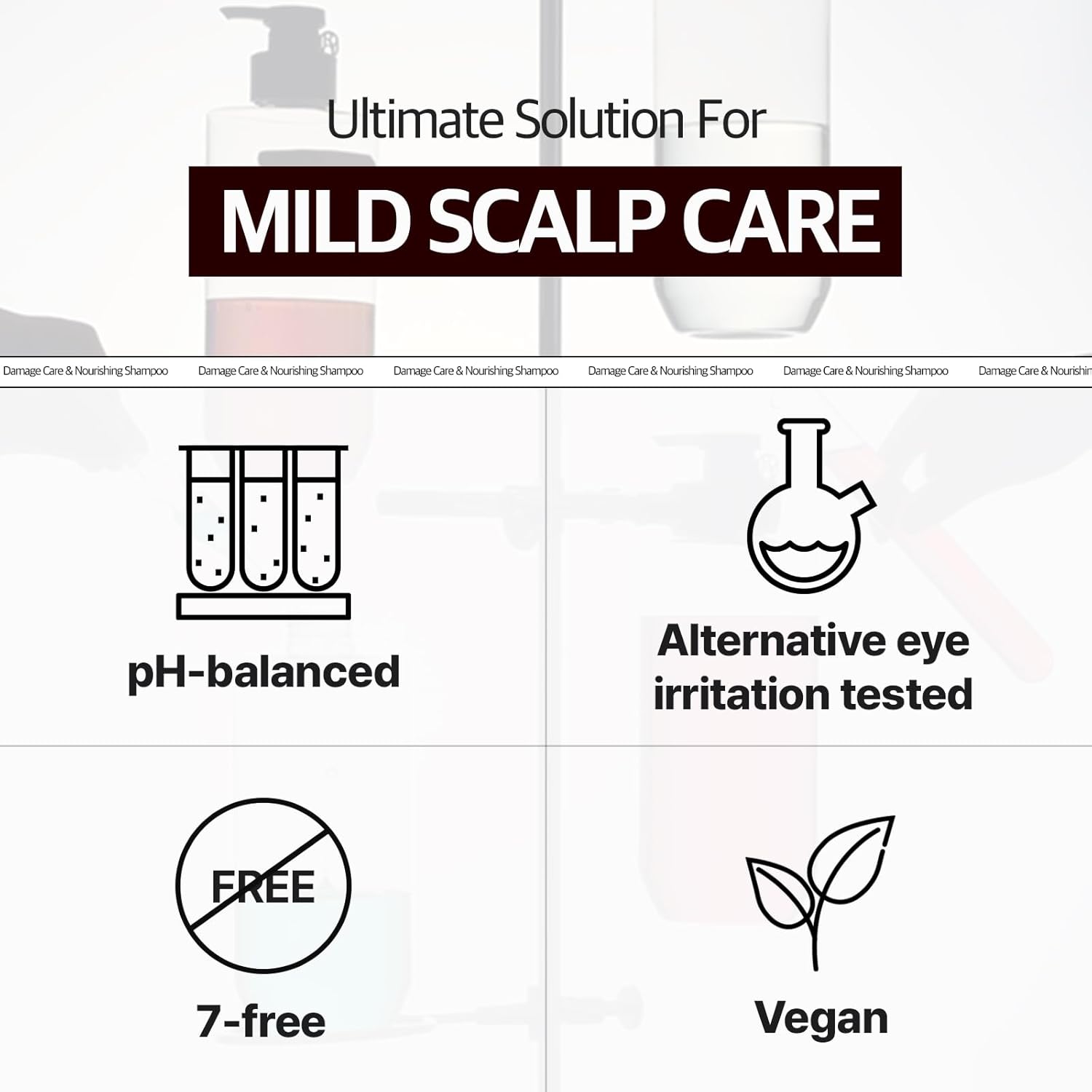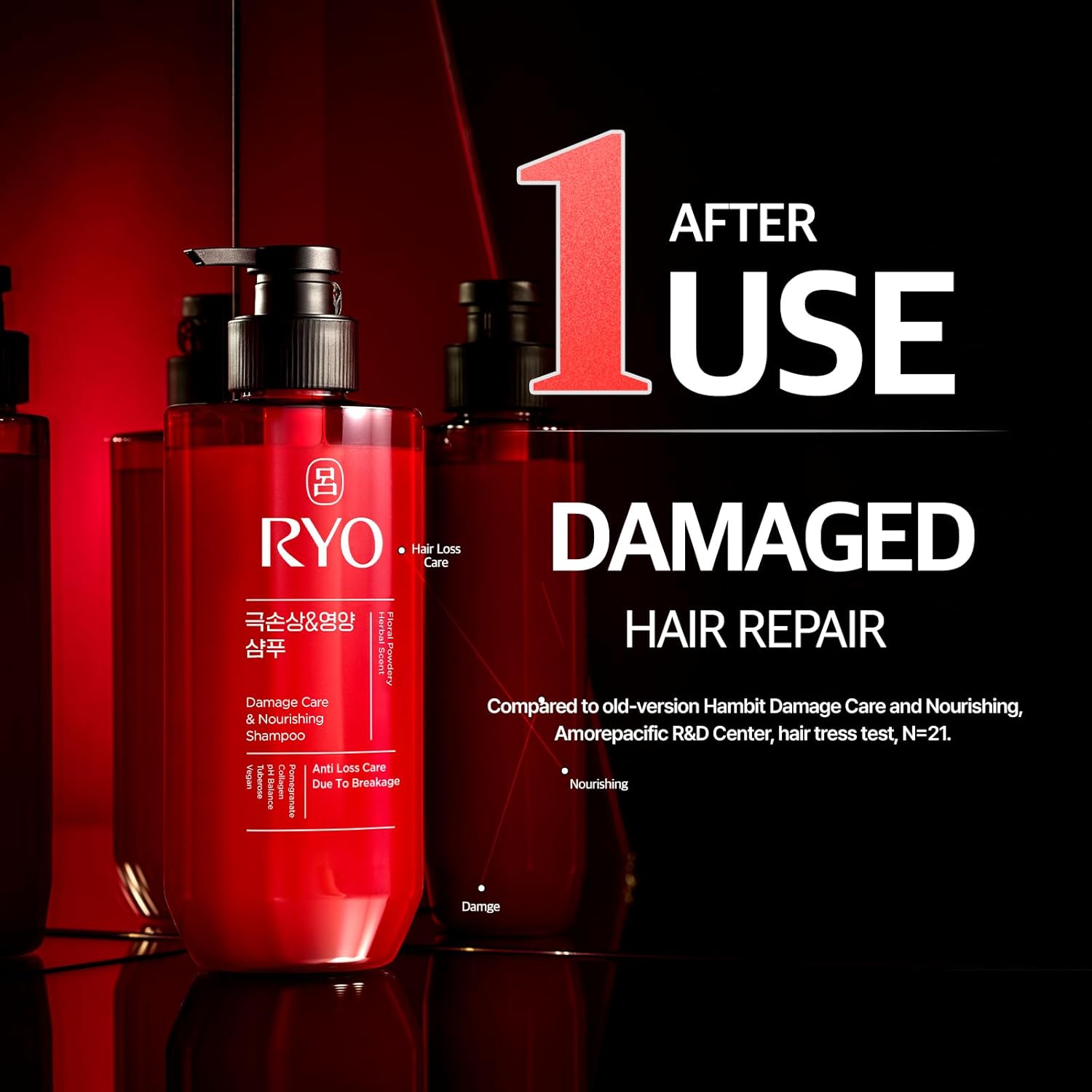 RYO Damage Care & Nourishing Shampoo with Korean Ginseng & Caffeine - Repair and Moisturizing, Anti Loss Care, Strengthening hair roots, 16 Fl Oz.