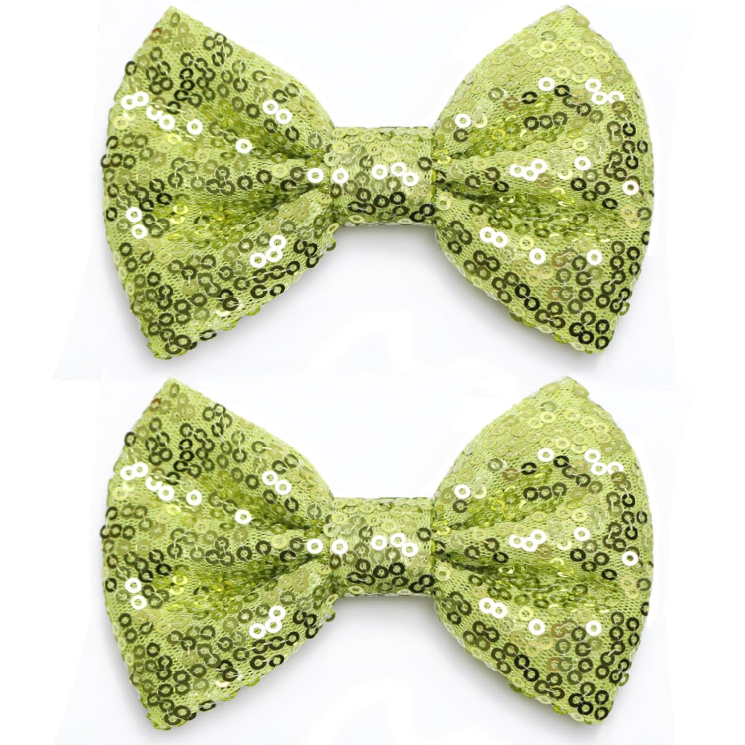 KISZU 4 Inch Sequin Glitter Hair Bows Clips, Sparkling Bling Little Bow HairPins Hair Accessories for Baby Girls Kids Children Teens and Women (Apple Green)