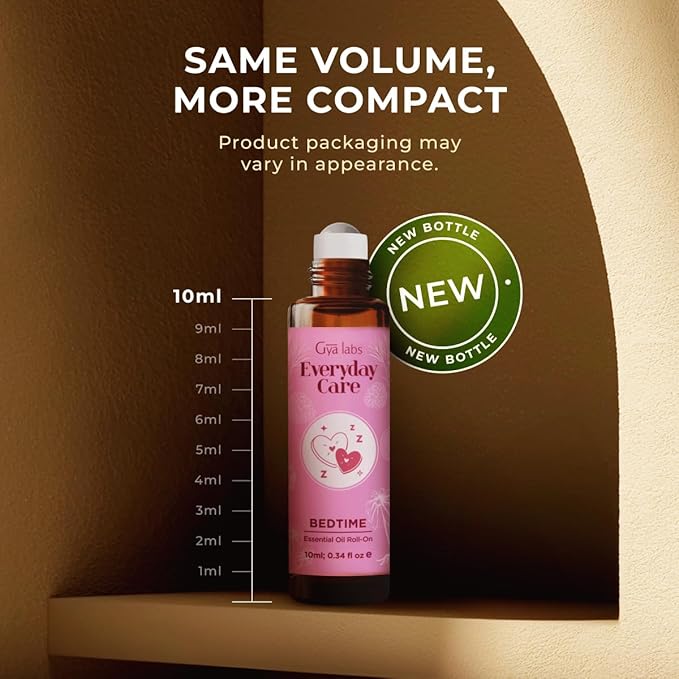 - Expertly Bottled & Packaged. Gya Labs’ Bedtime Oil Roll On is packaged in a glass amber bottle to ensure purity. Our Gya Labs essential oil roll on are also carefully handled, not tested on animals and undergo strict quality control .