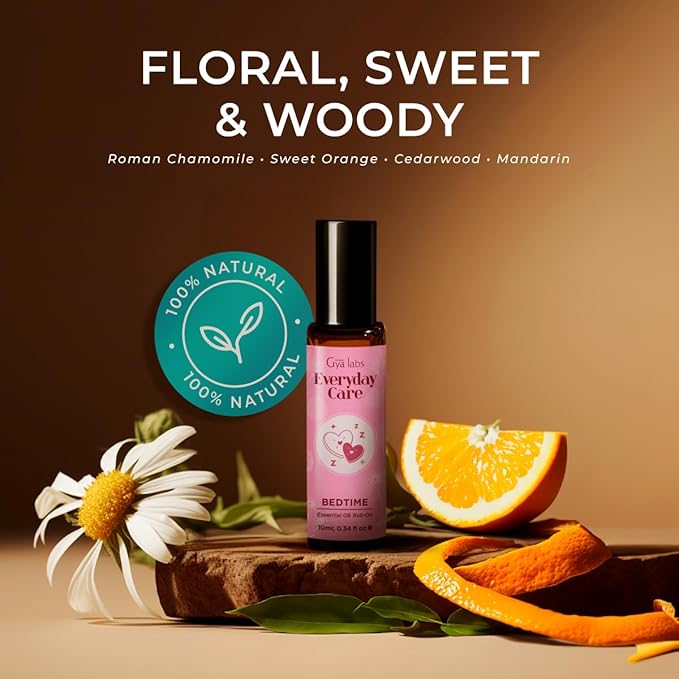 Gya Labs Bedtime Essential Oil Roll on - 100% Pure Natural Oil Roller for Restful Nights, Blend of Calming Chamomile, Sweet Orange & Cedarwood, Relaxing Aromatherapy, Travel Size (0.34 Fl Oz)