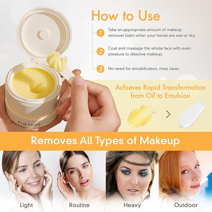 Kimtrue 3rd Generation Meltaway Cleansing Balm - Makeup Remover Balm for All Skin Types - Gently Meltaway Mascara, Eyeliner and Makeup - Oil Face Cleanser - Hydrating, Fragrance-Free - 3.38 oz
