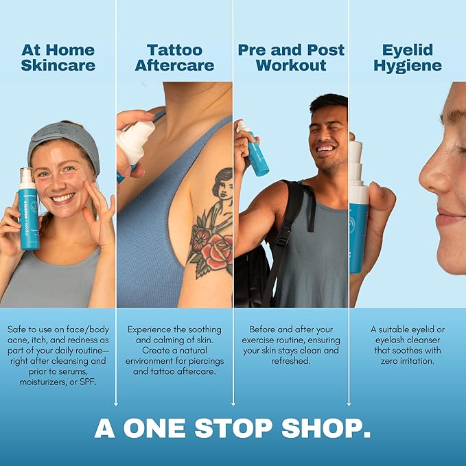 - Bonus for Tattoo & Workout Enthusiasts: As a potent cleansing agent, HOCl is safe for tattoo aftercare. Getting breakouts after a sweaty workout? Bring this quick and convenient cleansing spray to the gym for pre/post-workout use!