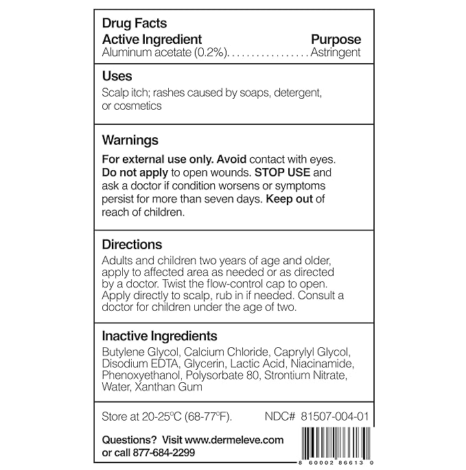 - PROMOTES HEALING & SKIN BARRIER REPAIR with Mineral Salts, Calcium, and Niacinamide to drastically reduce the burning, itching pain in your scalp that keeps you up at night. Dermeleve scalp moisturizer provides itchy scalp relief and helps prevent reoccuring dryness.