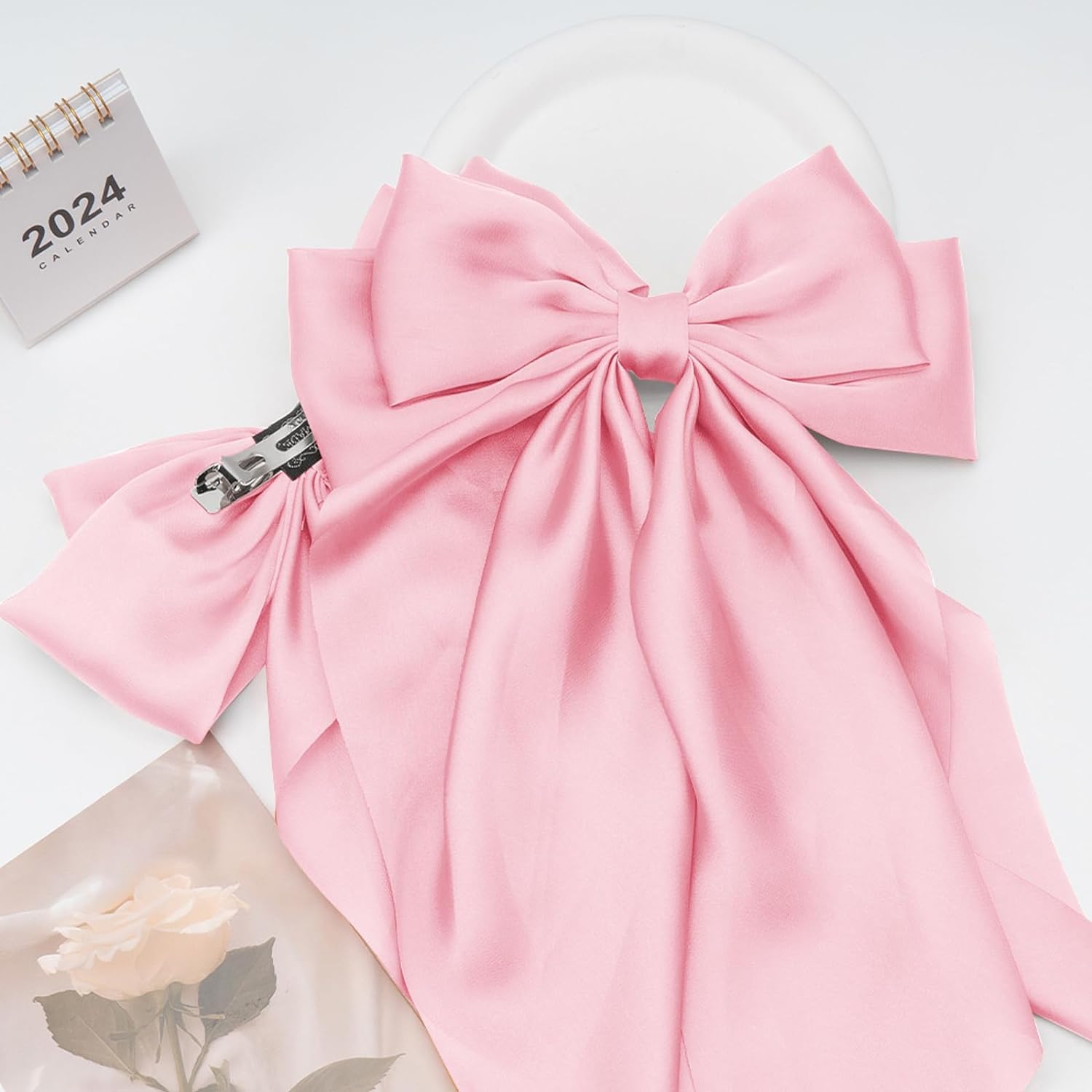 Large Hair Bows 2PCS Pink White Hair Bow for Women Big Satin Long Tail Hair Bow Hair Clips Aesthetic Hair Accessories