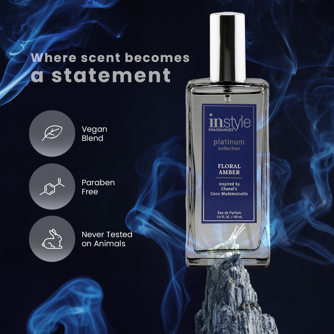 Instyle Fragrances, Platinum Collection, Floral Amber, Inspired by Chanel's Coco Mademoiselle, Women’s Eau de Parfum, CLEAN, Vegan, Paraben-Free, Never Tested on Animals, 3.4 Fluid Ounces