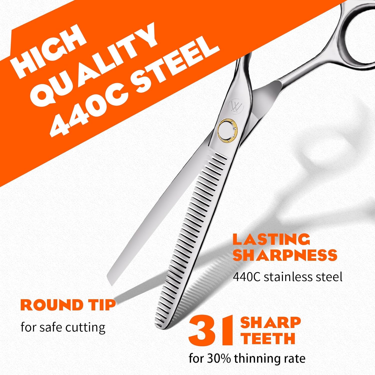 - SUPERIOR QUALITY: These thinning shears for hair cutting are made of 440C premium stainless steel. The steel is professionally processed and unique grinding technology ensures the precision and smoothness, making it easier for the scissors to cut hair.