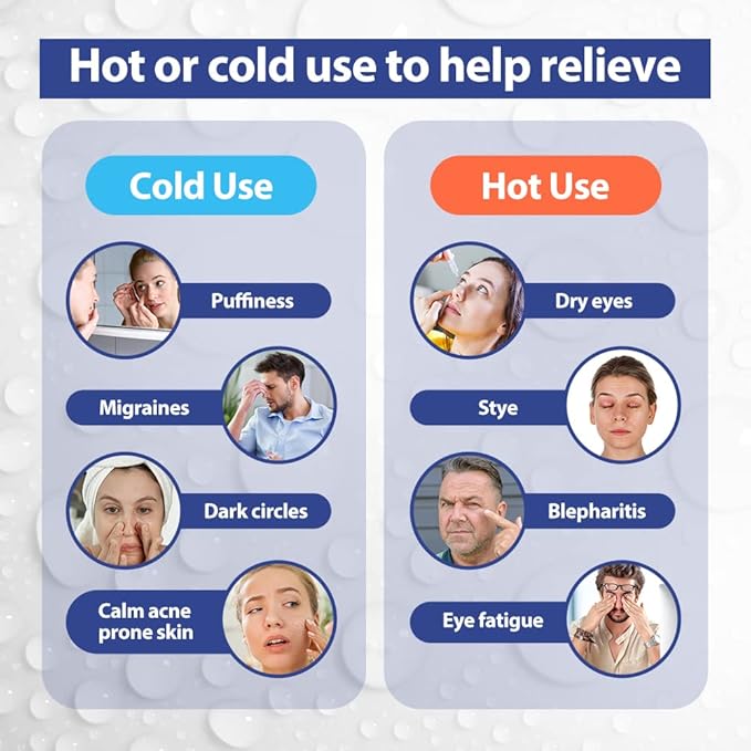 - ❤️Adjustable & Unisex Fit - With an adjustable head strap, our hot and cold eye mask is sure to fit perfectly on all different head shapes and are suitable for women, men, kids. Designed for long hours of comfortable wear as you relax and rest, and a secure fastener ensures the cold eye mask firmly stay on your eyes even as you toss and turn in bed.