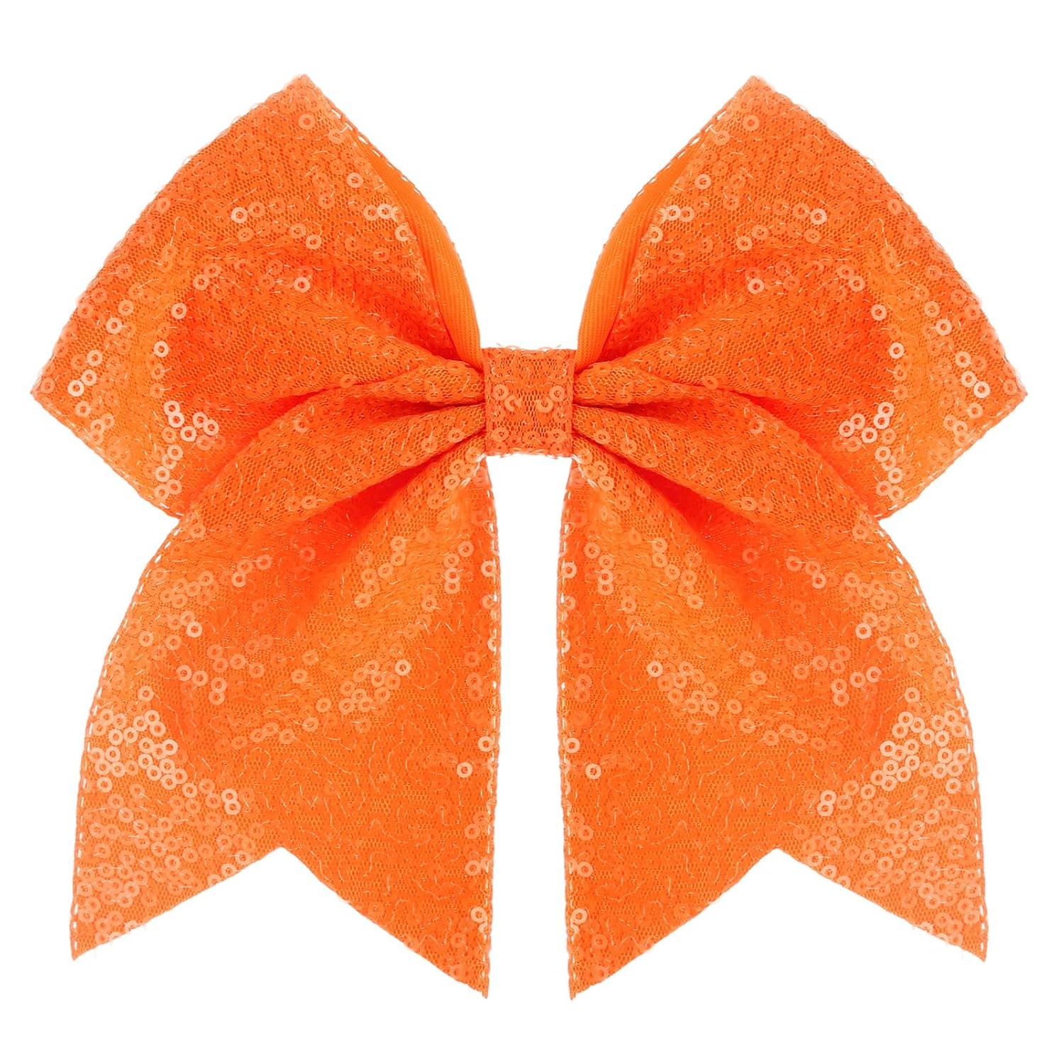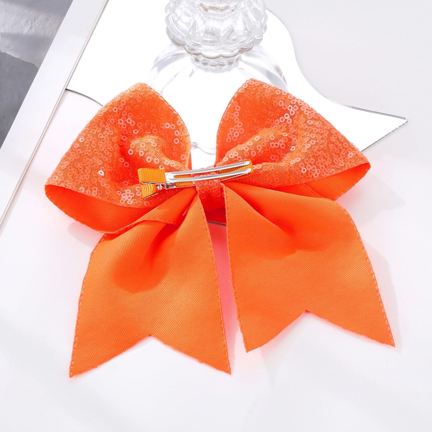 Large Glitter Cheer Bows Clips, Jumbo Big 7 Inch Cheerleading Sequin Hair Bow Hair Accessories for Teens Girls Football Sports Cheerleader Outfit Uniform (Orange)