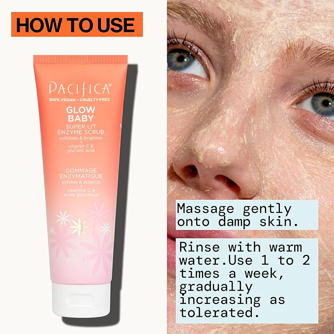 Pacifica Face Scrub - Glow Baby Super Lit Enzyme Scrub Mini, Skincare, Exfoliating Face Wash, Vitamin C, Glycolic Acid, Pore Cleaner, For Soft and Smooth Skin, Vegan, Travel Size, 1.4 fl oz (1 Count)