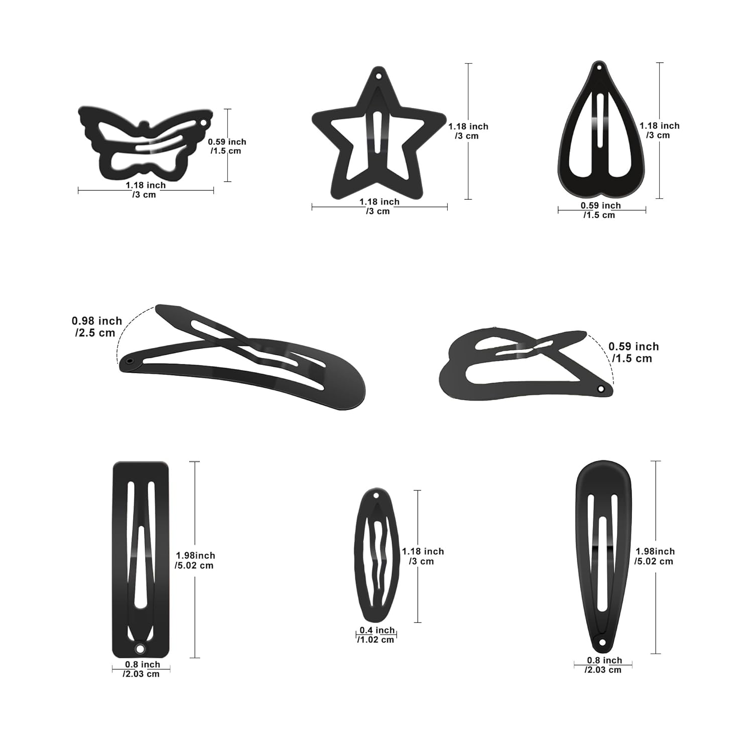 - Rich set: You will get 120 classic black snap hair clips, with 6 styles, butterfly, heart, oval, water drop, star, rectangle, 20 of each style.
