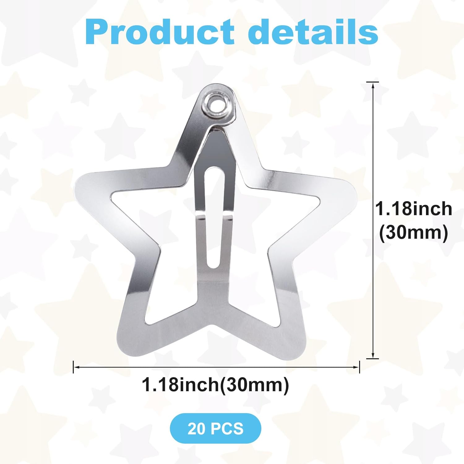 Joez Wonderful 20 Pcs Silver Star Hair Clips, Metal Hair Snap Clips for Women and Girls, Non-Slip Fashion Hair Accessories