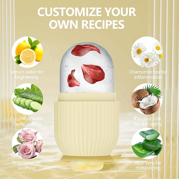 - Customize Preferences - Facial ice roller can enhance the skin care effect as per your creativity and customized formula according to your specific skin needs, such as lemonade for whitening, and coconut for improving skin. Even you can use a juicer to squeeze them into juice, then add water, essential oils, and roses to the ice tray.