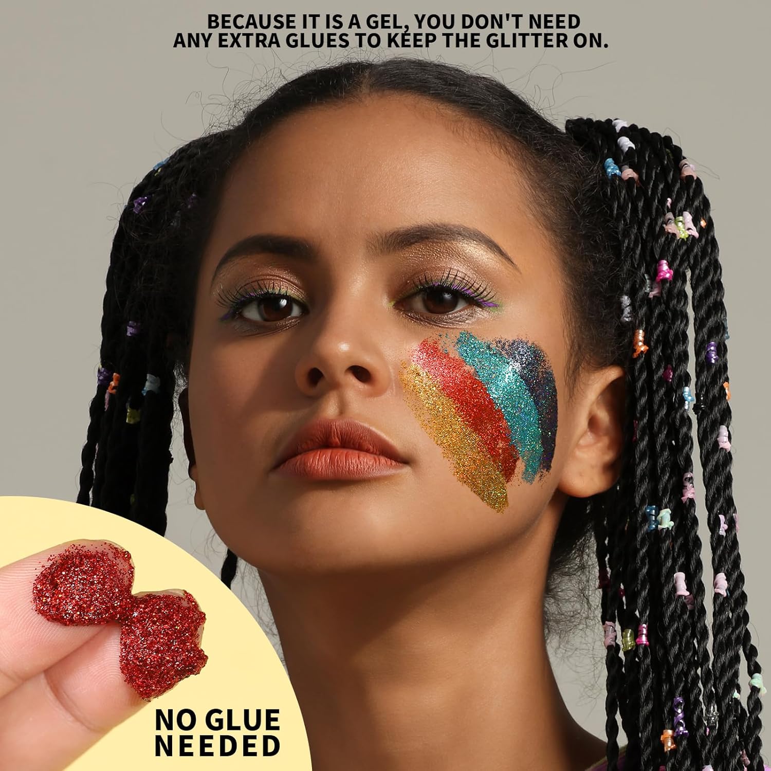 - EASY APPLICATION GLITTER FOR FACE AND BODY - Just apply it. Our face and body glitter gel consistency eliminates the hassle of typical loose glitter, providing a quick, clean, and professional-quality finish for all your creative endeavors.