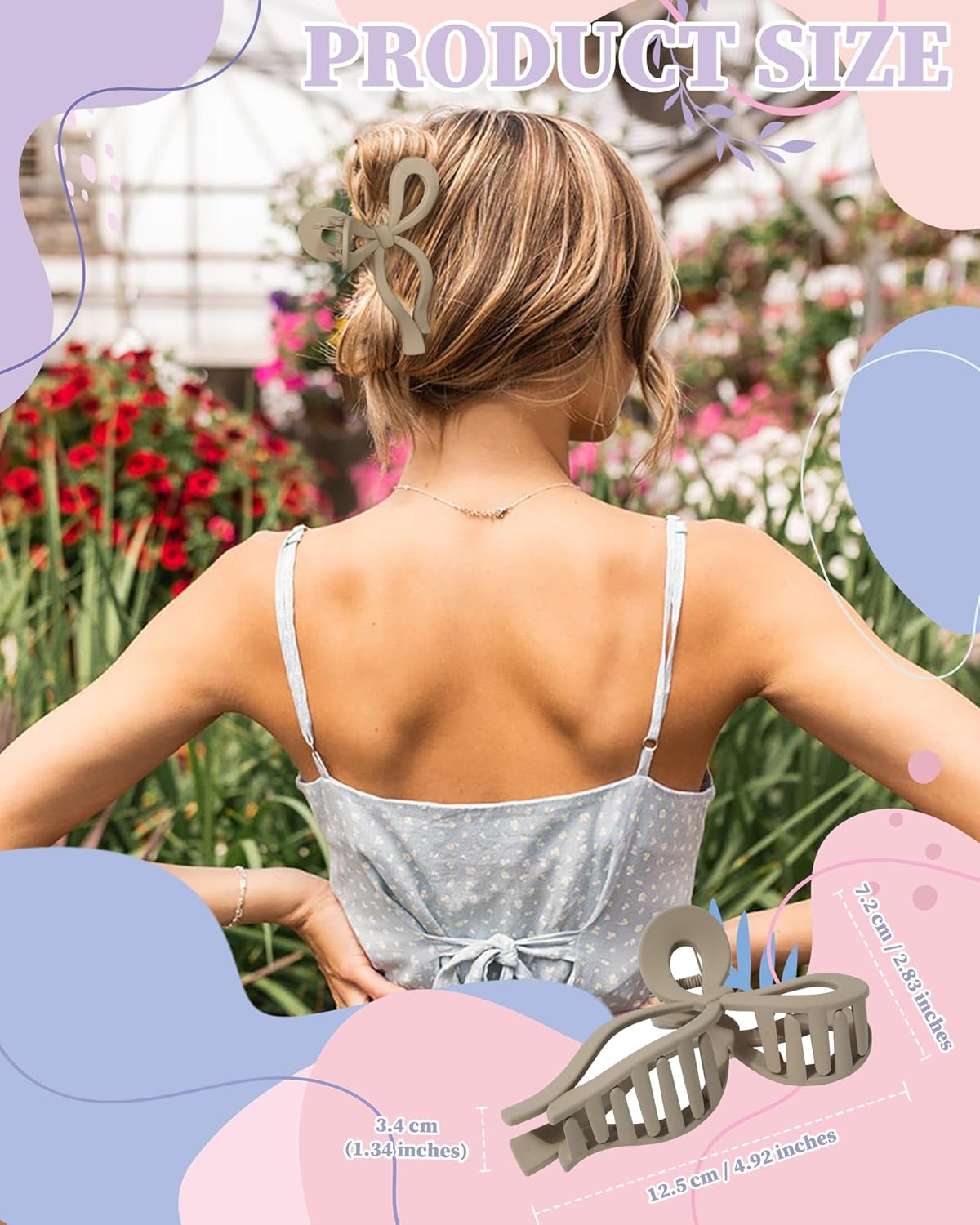 4 PCS Bow Hair Clips Bow Claw Clip for Women Nonslip Large Hair Claw Clips for Thin and Thick Hair Strong Hold Hair Bows (Black+Light Brown+Off-White+Dark Brown)