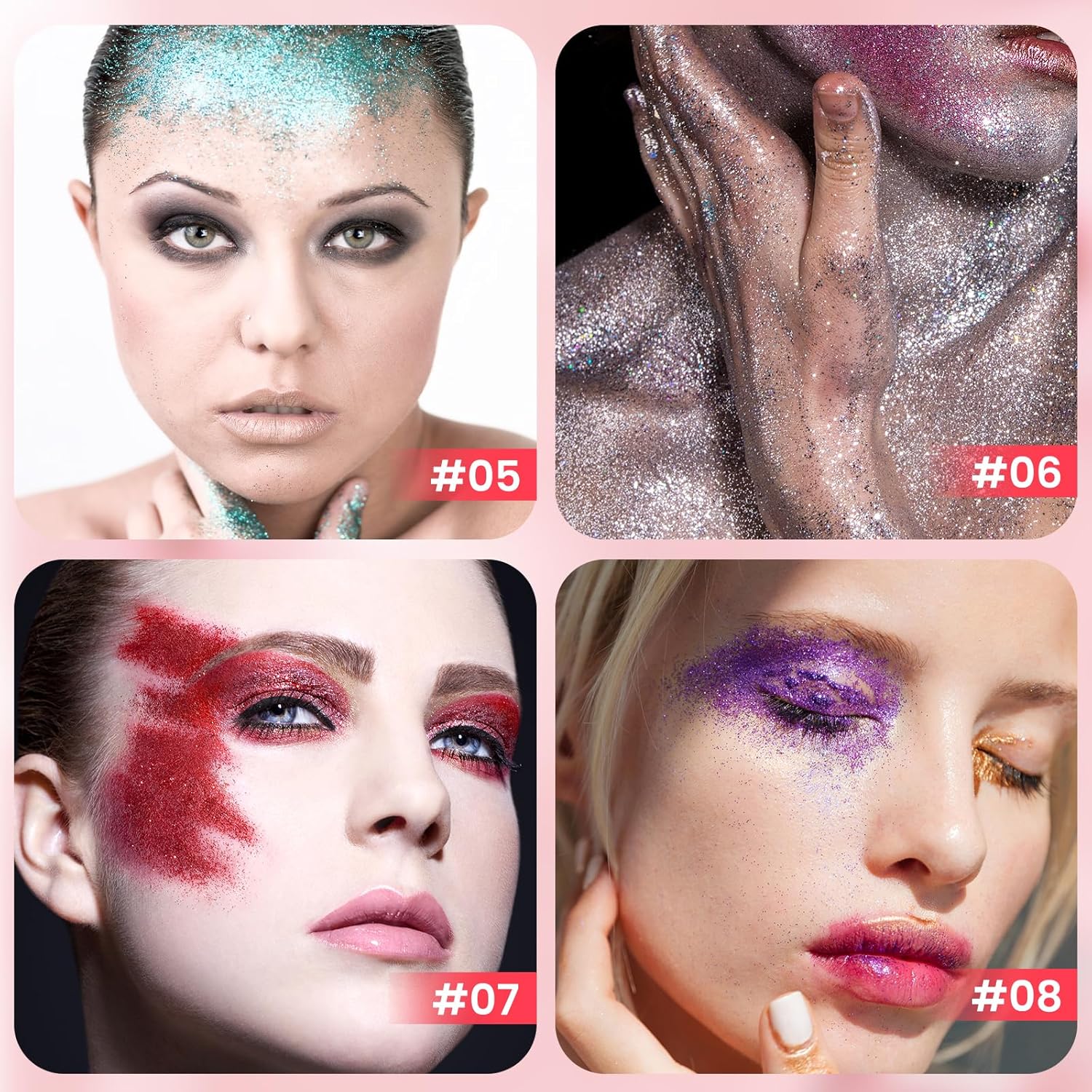 - 【Waterproof and Sweat-Proof】The special gel formula allows the glitter to be tightly adsorbed on the skin surface, not easy to fall off, waterproof and sweat-proof, lasting all day, allowing you to be at ease in any occasion. If the glitter accidentally gets into your eyes, please rinse with clean water immediately. It can be easily removed with soap or water.