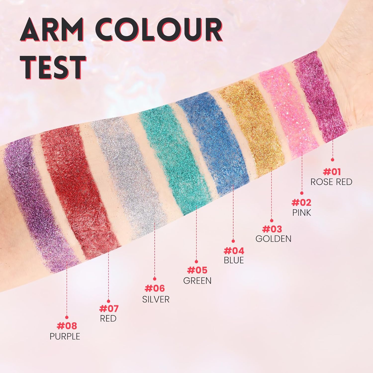 - 【Multiple Colors and Multi-Purpose】A variety of colors are available, including: Rose Red Body Glitter, Pink Body Glitter, Gold Body Glitter, Blue Body Glitter, Green Body Glitter, Silver Body Glitter, Red Body Glitter, Purple Body Glitter. Holographic glitter sticks can be used on your face, body, hair, eyes, lips, it can also be used as glitter lipstick or glitter eyeshadow.