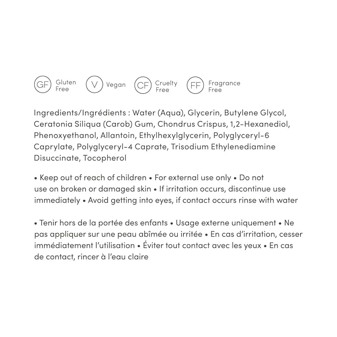 - Ingredients: Glycerin, Chondrus Crispus extract, and Allantoin - A powerful blend of ingredients that moisturizes, soothes, and supports healthy skin