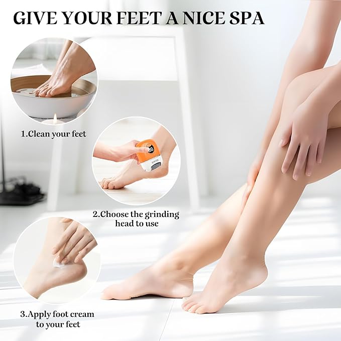 - Powerful Foot File with 3 Grinding Heads 2 Speeds - This electric foot callus remover with 3 removable grinding heads and 2 speeds:10000x/min when at low speed and 12000x/min when at high speed. If the pressure is too strong, the electric callus remover for feet will automatically stop working and avoid damage to the healthy skin. You’re going to need only the cream of the crop if you want smooth, baby-soft feet! So our foot scrubber would be your first choice, which give you a new experience