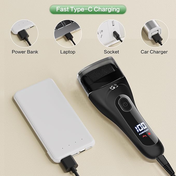 - Upgraded Battery Technology: This foot sander has LED digital display function, which can help you observe the remaining power in real time; This electric foot file callus remover has upgraded battery technology, which can be charged by TYPEC, and it only takes 2 hours to fully charge, and it can be used for 8 hours when fully charged.