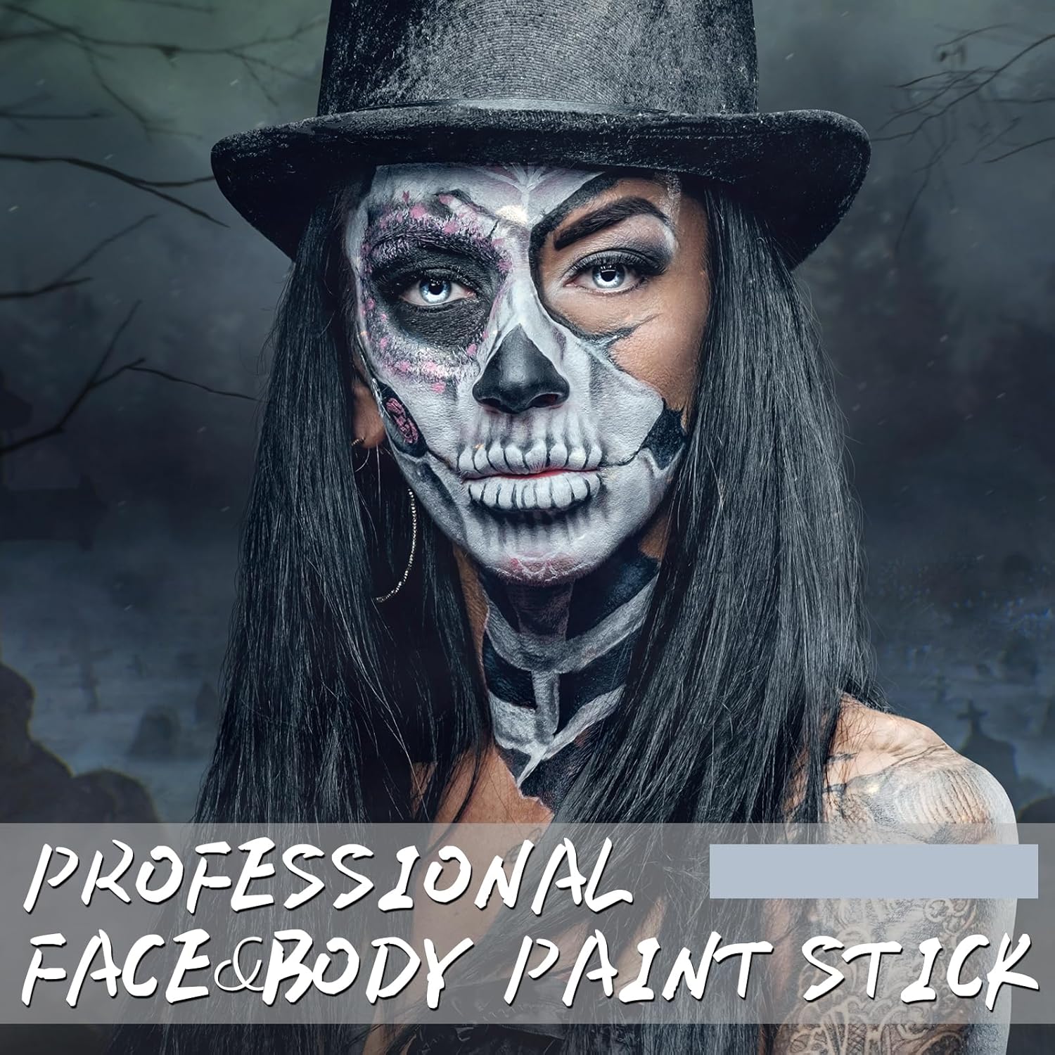 - PRO FACE BODY PAINT STICK --- Our grey face paint sticks are 1.06oz/30g in size, and are large enough to cover all types of Halloween characters' face and body makeup. The waterproof and sweat-proof oil-based formula glides on and blends easily, does not fade, crack, flake, or clump. It can be easily applied with a brush, sponge, or fingers. Warm Tips: Since this is an oil-based product, we strongly recommend that you use a setting product after application to keep the makeup longer and avoid transfer and smudging.